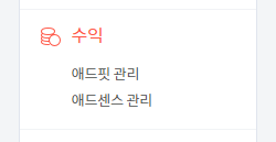 이제는 블로그관리의 수익탭에 애드핏과
